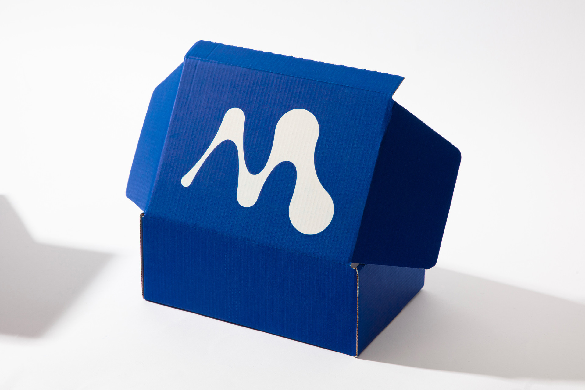 Our flexible icon system utilises twelve versions of an uppercase ‘M’ including all the variants in between for the symbol’s digital animations. The brand identity pairs a palette of electric blue and off-white, anchored by Monosten, a monospace typeface from Colophon, to establish scientific precision.