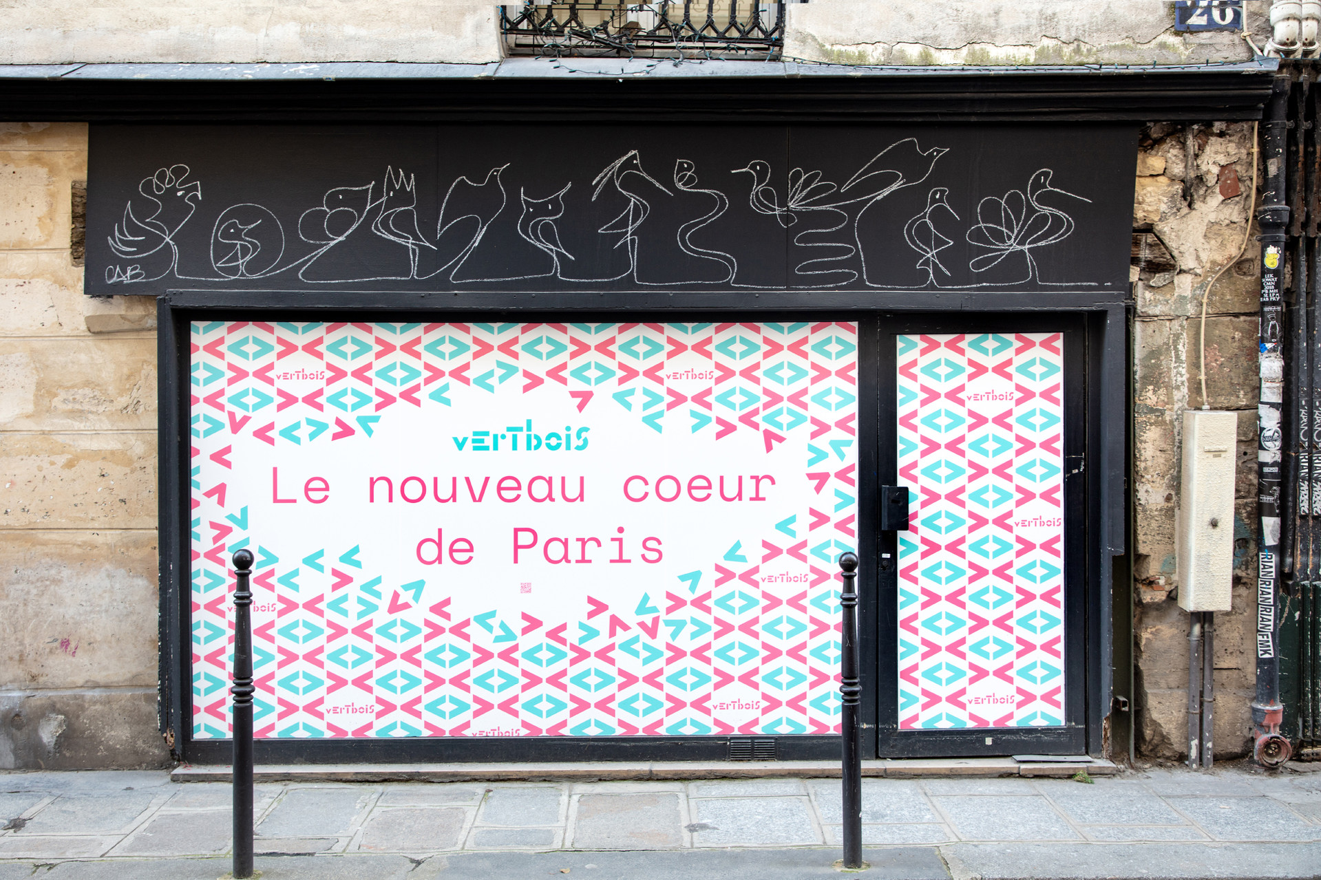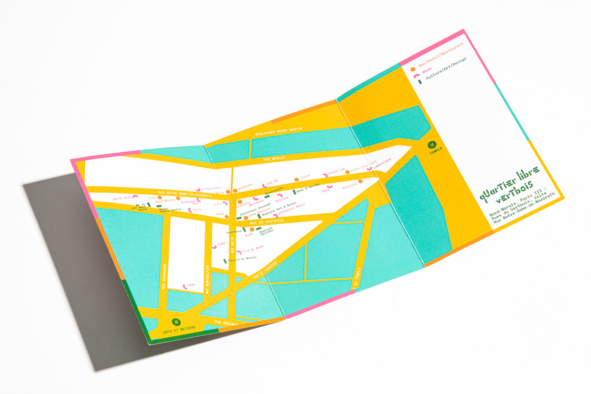 Vertbois is a vibrant quarter where restaurants, galleries, bakeries, hotels, and independent record stores converge. To capture the area’s rich diversity, we created a visual identity rooted in a robust modular system. We developed the brand's identity from four core graphic modules; these elements serve as the building blocks for the logo’s letterforms, resulting in a mark that is both highly structured and distinctive. These same modules extend into a library of patterns and icons, forming a cohesive visual language across all brand touchpoints - including a unique die-cut wine label. The result is a systemic, evolving identity that mirrors the vitality of Vertbois while ensuring a bold, recognisable presence.