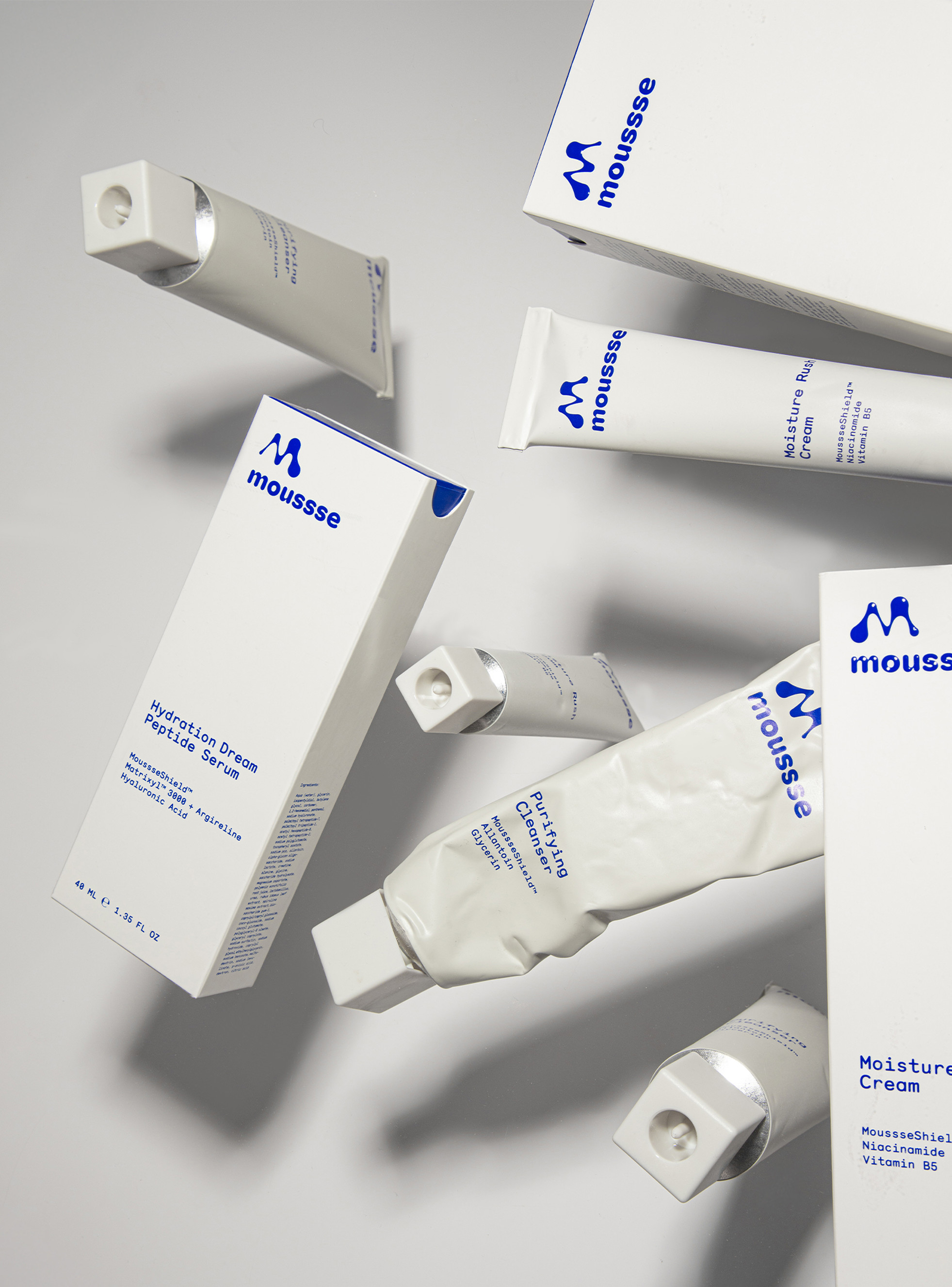 Beyond the core system, we created pictograms and delivered a minimal and evolving set of brand guidelines. We now accompany the founders as moussse experiences exponential growth.To deploy the brand for its commercial launch we also produced packshots, still life photography, and video content.