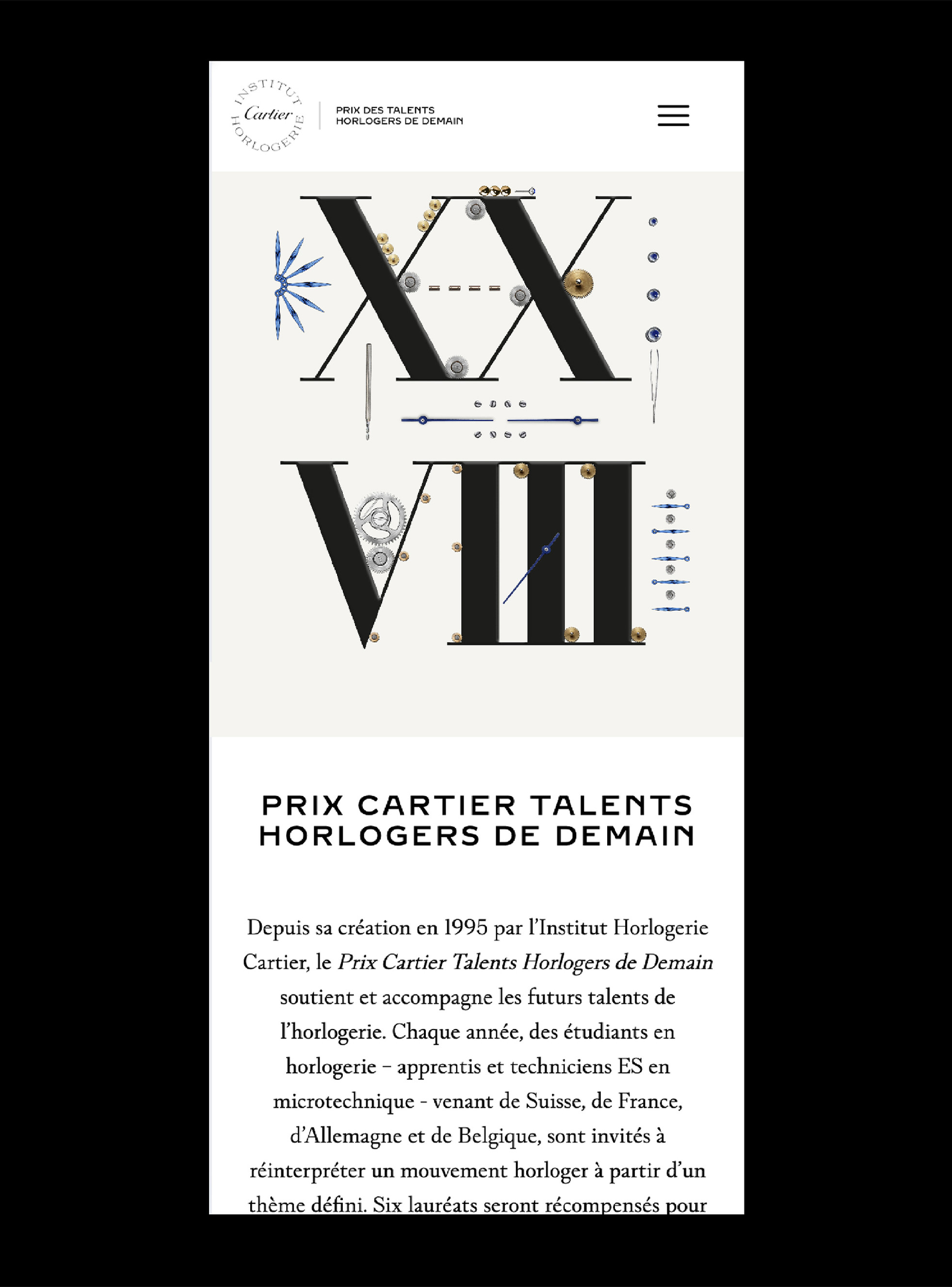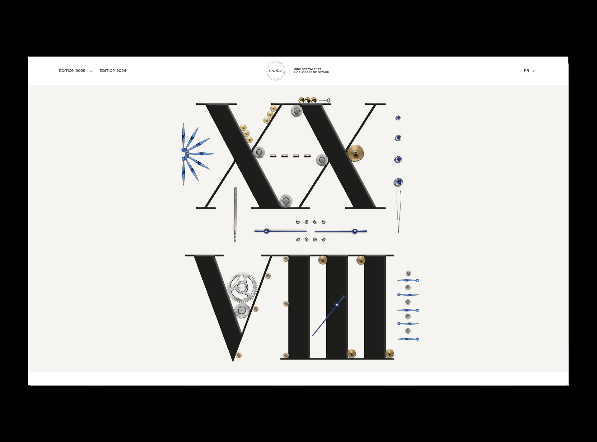 For the 2025 Prix Cartier Talents Horlogers de Demain, we created the key visual and video - an animated collage of gears, wheels, and hands, combined with the exclusive typefaces we designed for Cartier.