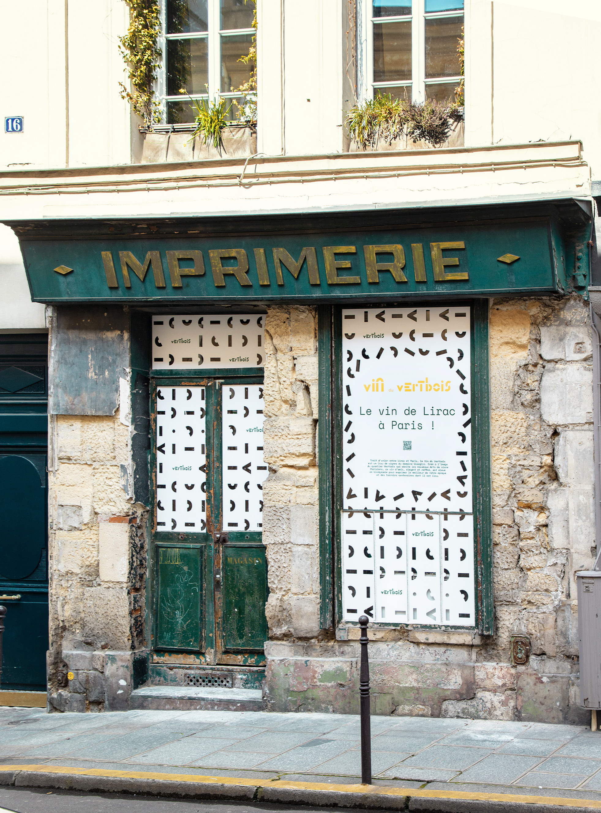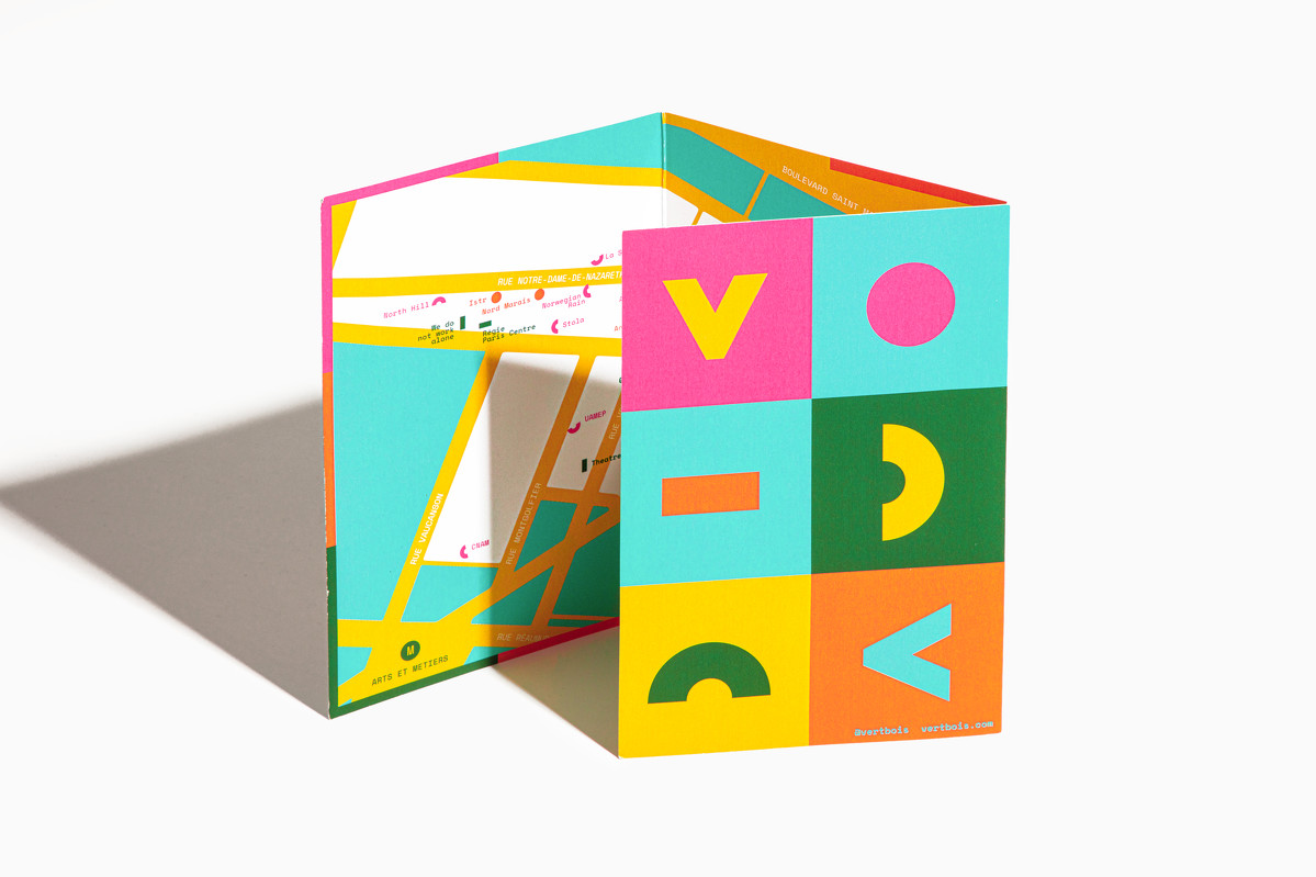 Vertbois is a vibrant quarter where restaurants, galleries, bakeries, hotels, and independent record stores converge. To capture the area’s rich diversity, we created a visual identity rooted in a robust modular system. We developed the brand's identity from four core graphic modules; these elements serve as the building blocks for the logo’s letterforms, resulting in a mark that is both highly structured and distinctive. These same modules extend into a library of patterns and icons, forming a cohesive visual language across all brand touchpoints - including a unique die-cut wine label. The result is a systemic, evolving identity that mirrors the vitality of Vertbois while ensuring a bold, recognisable presence.